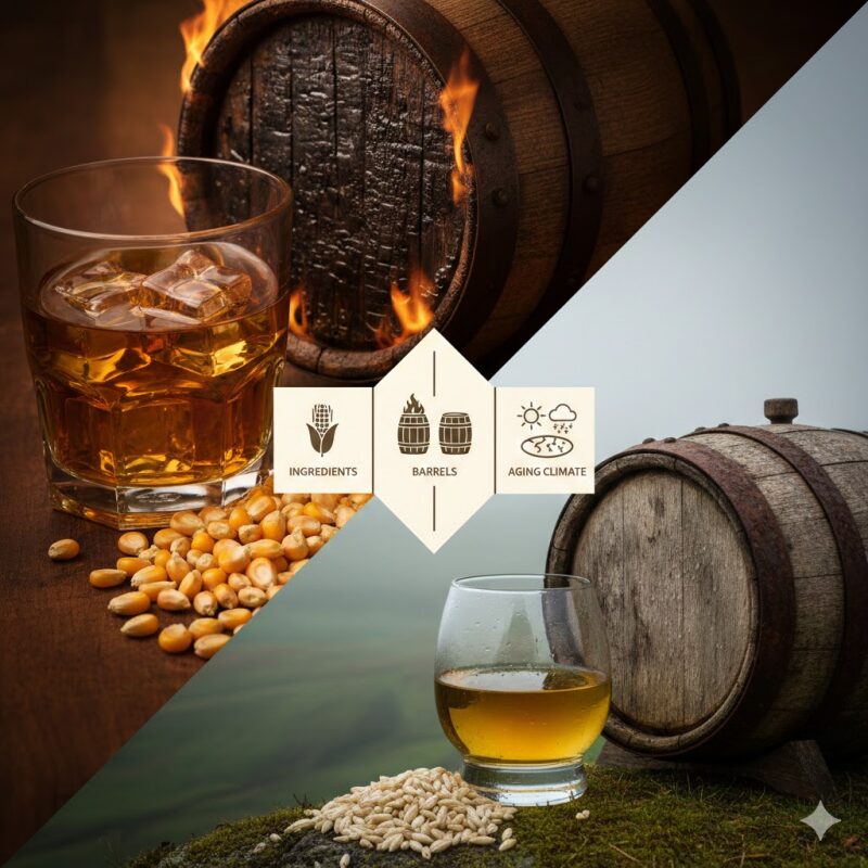 実は、バーボンとスコッチなどのモルトウイスキーでは、原料や樽のルール、そしてもちろん「味わい」が全く異なります。